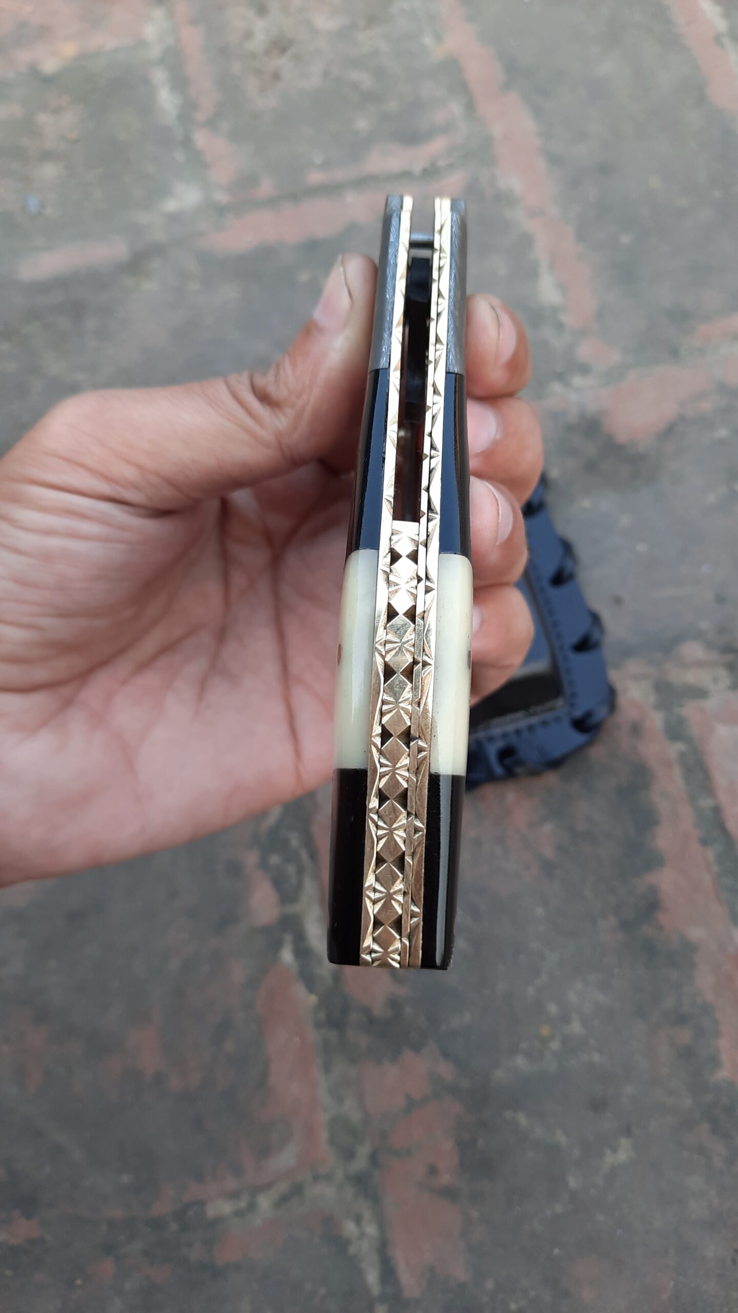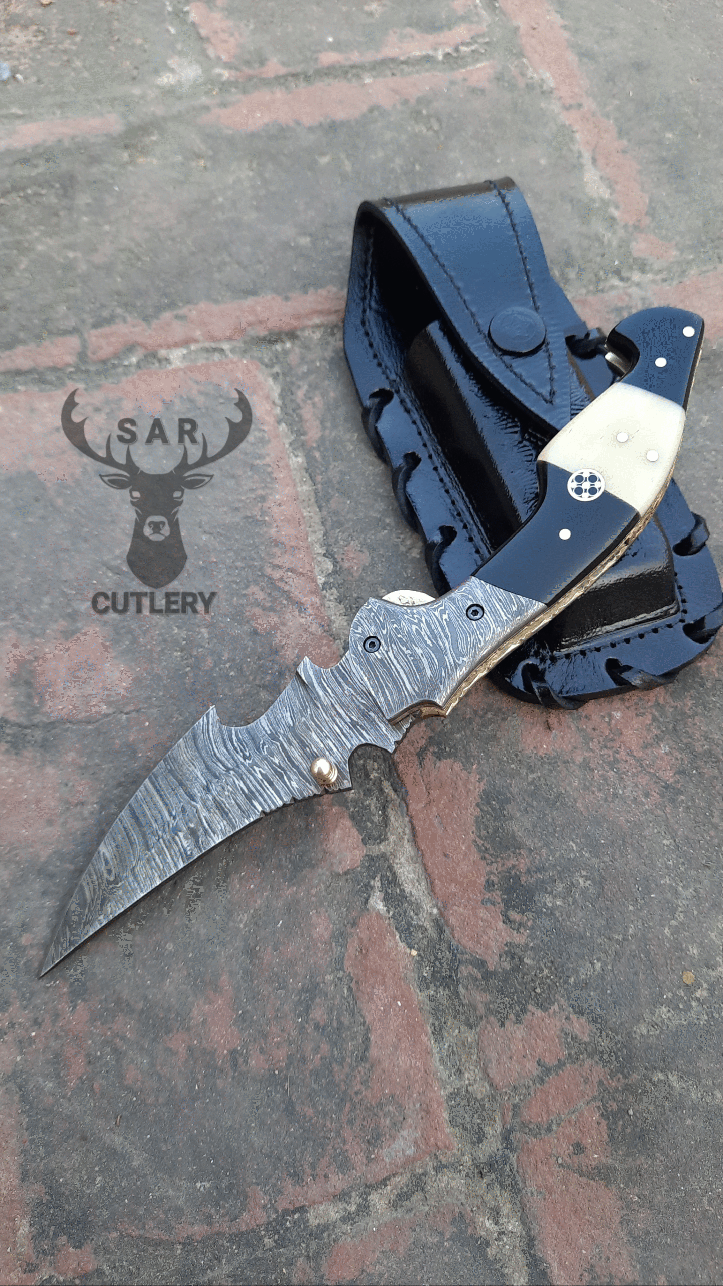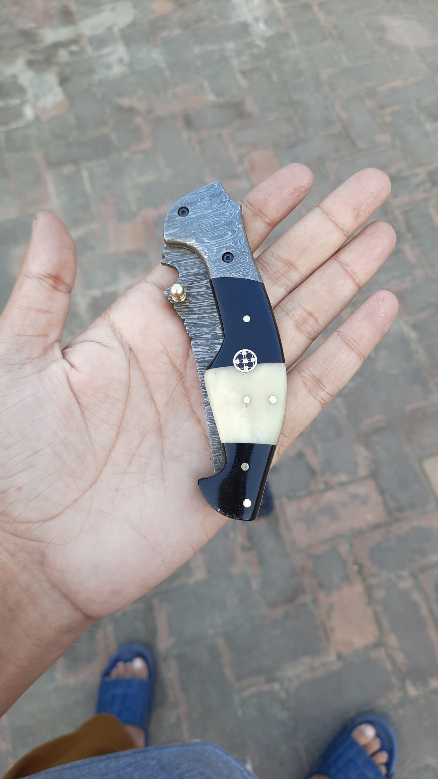 Experience the elegance and strength of this handmade Damascus pocket knife.